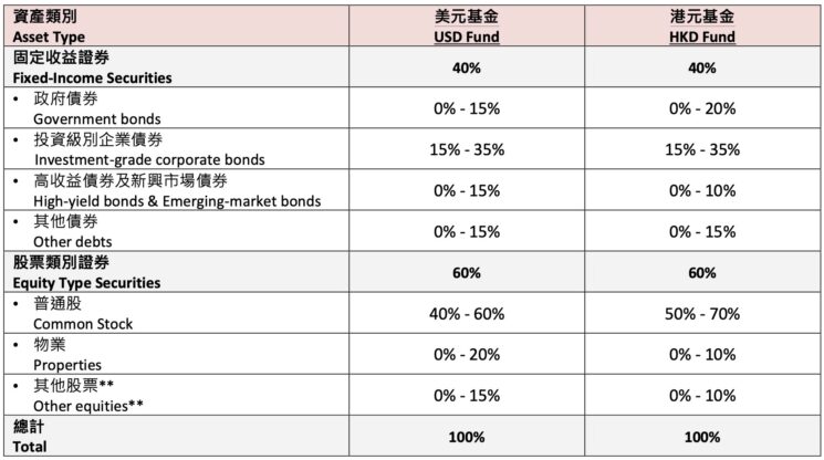 ・債券などのFix-income Assetに40%、株式などに60%のポートフォリオ
