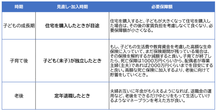 3-2.【子どもの成長期】【子育て後】【老後】の見直し時期と必要保障額のポイント