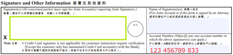 ここまでPDFにご記入が終わりましたら、全ページをプリントアウトして最後のページにHSBCご登録署名(直筆)と口座番号をご記入ください。