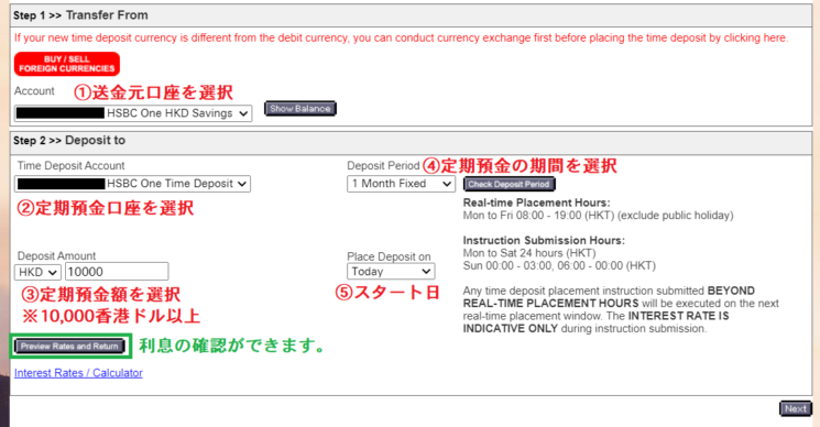 … HKD SavingsとHKD Current間で資金移動することをおすすめしています(手数料無料)
