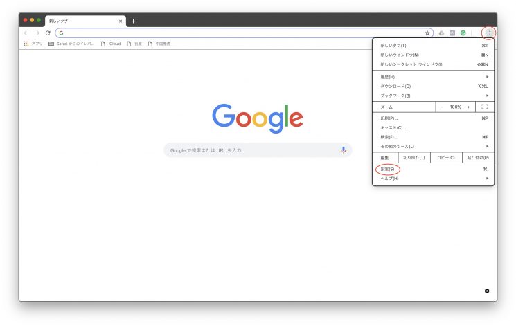 → Google Chrome Mac版の右上「︙」をクリック