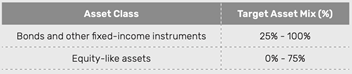 ・債券などのFix-income Assetに25〜100%、株式などに0%〜75%のポートフォリオ