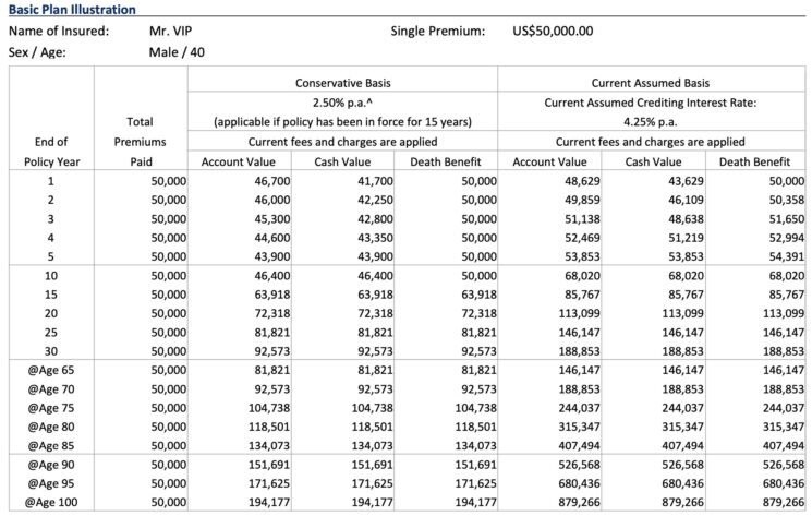 下記は40歳男性がUSD 50,000一括で支払った例です。