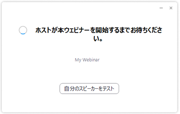 セミナー開始前は以下の様な画面が表示されますので、そのままお待ちください。開催時間になりますと自動でセミナーが開始します。